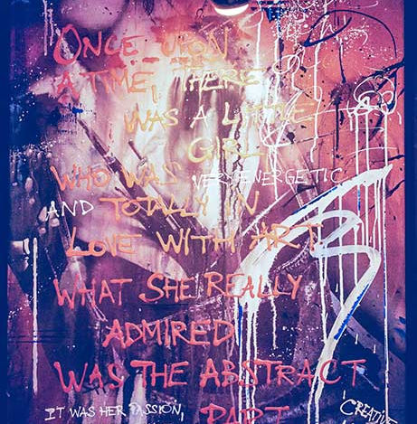She expresses herself mainly through action painting,which is a highly dynamic kind of art.